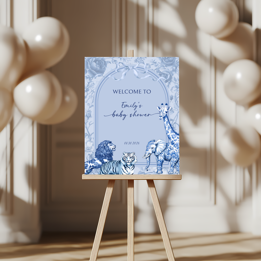 Baby Shower Welcome Sign - Blue Toile de Jouy Safari BS85