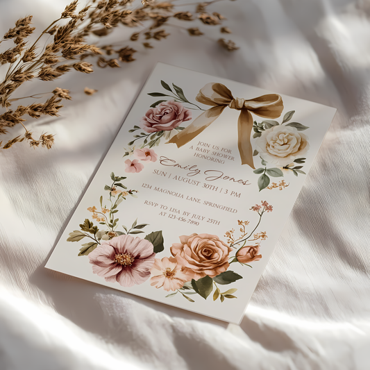 Baby Shower Invitation - Elegant Vintage Floral Blush Gender Neutral BS125