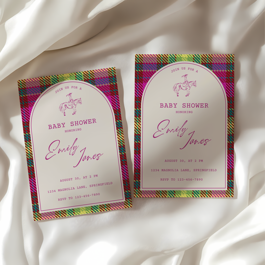 Baby Shower Invitation - Bright Colorful Plaid Equestrian Polo Club Theme BS128