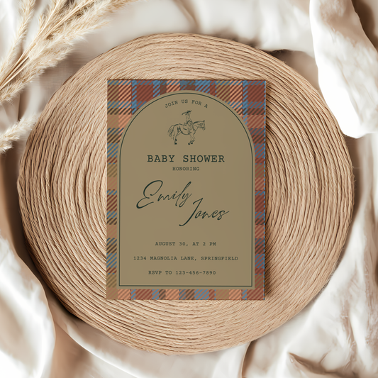 Baby Shower Invitation - Classic Tartan Polo Club Equestrian Theme BS128