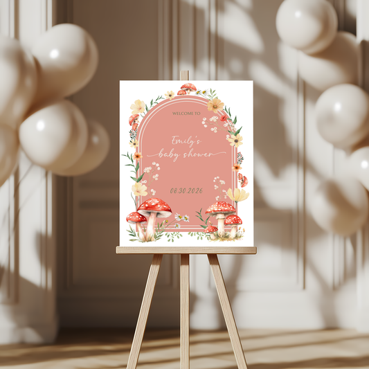 Baby Shower Welcome Sign - Beige Fungi Mushroom Woodland Forest BS82