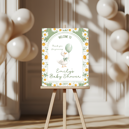 Baby Shower Welcome Sign - Little Silly Goose Green Daisies BS88