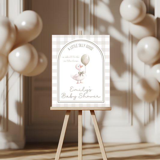 Baby Shower Welcome Sign - Little Silly Goose Beige Gingham BS90