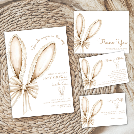 Baby Shower Invitation Bundle - Somebunny Is On The Way Easter Bunny Coquette Bow Beige BS75