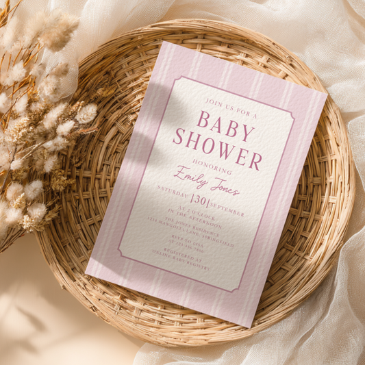 Dusty Pink Striped Baby Shower Invitation BS275