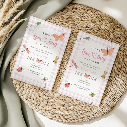 Pink Gingham Love Bug Baby Shower Invitation BS277