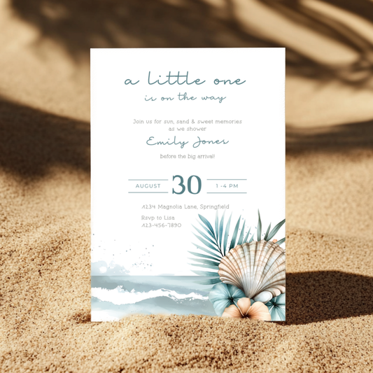Baby Shower Invitation - Blue Ocean Beach Shell Palm Gender Neutral BS139