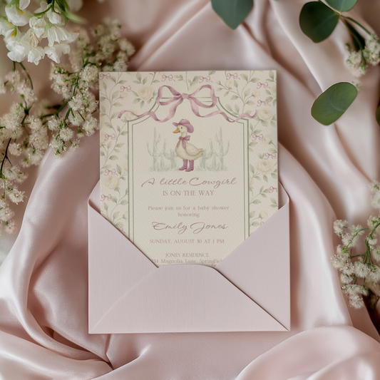 Baby Shower Invitation - Vintage Little Cowgirl Silly Goose Grandmillennial Coquette BS150