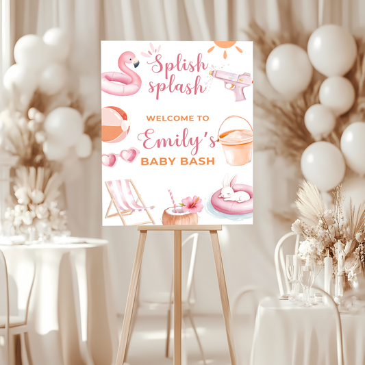 Baby Shower Welcome Sign - Pink Summer Pool Party Beach Baby Bash BS141