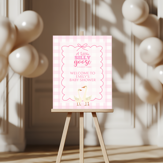 Baby Shower Welcome Sign - Pink Silly Goose Gingham BS22