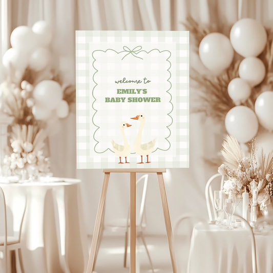 Baby Shower Welcome Sign - Green Silly Goose Gingham BS24