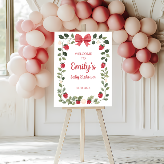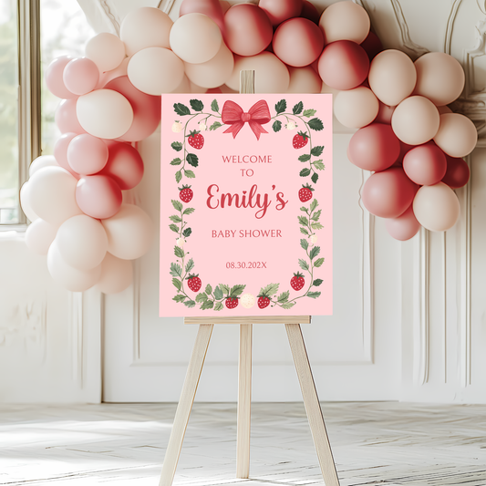 Baby Shower Welcome Sign - Pink Strawberry Berry Sweet Vintage Floral BS63