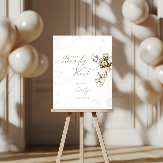 Baby Shower Welcome Sign - Beige Bearly Wait Toile de Jouy BS36