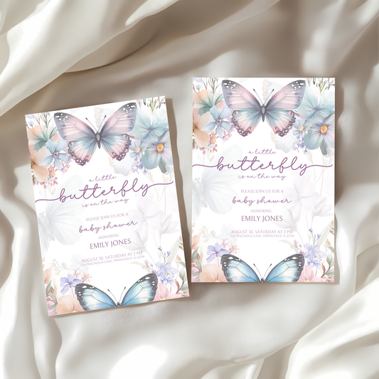 Baby Shower Invitation - Purple Blue Butterfly Fantasy BS45