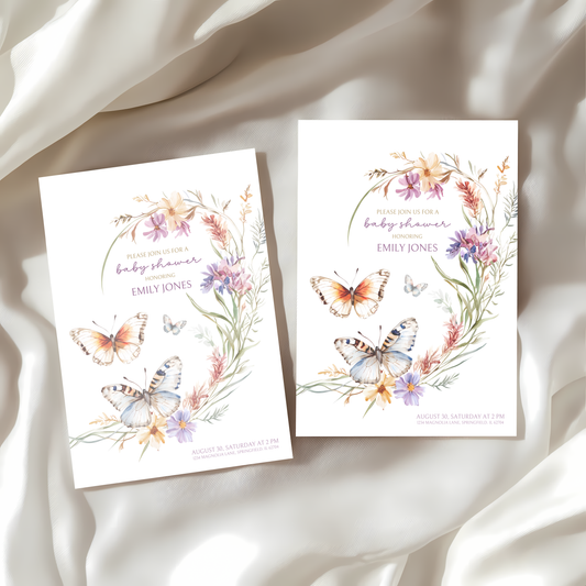 Baby Shower Invitation - Butterfly Wildflowers Baby In Bloom BS46