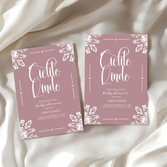 Baby Shower Invitation - Cielito Lindo Pink Mauve BS50
