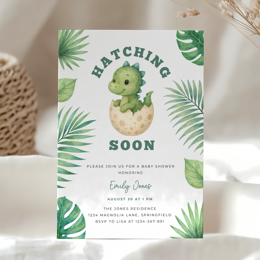 Baby Shower Invitation - Hatching Soon Dinosaur Theme BS216