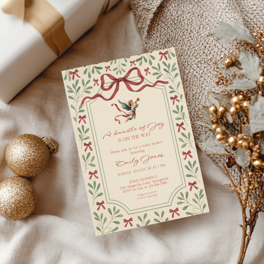 Baby Shower Invitation - Vintage Christmas Florals with Elegant Angel BS232
