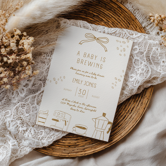 Baby Shower Invitation - A Baby Is Brewing Beige Coffee Theme BS182