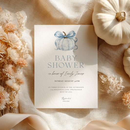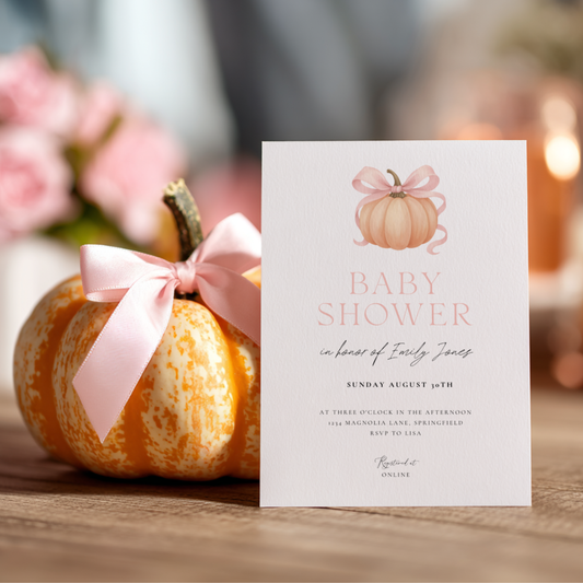 Baby Shower Invitation - Little Pumpkin with Bow BS189