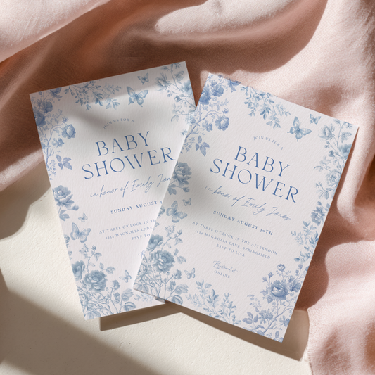 Baby Shower Invitation - Blue Toile de Jouy Elegant Vintage Florals BS187