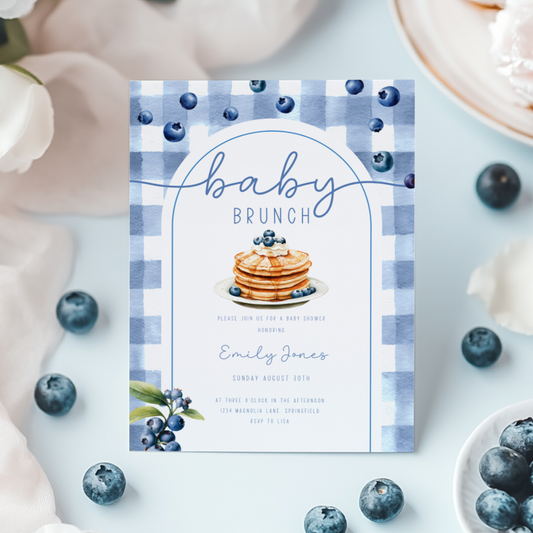 Baby Shower Invitation - Baby Brunch Blueberry Pancakes BS192