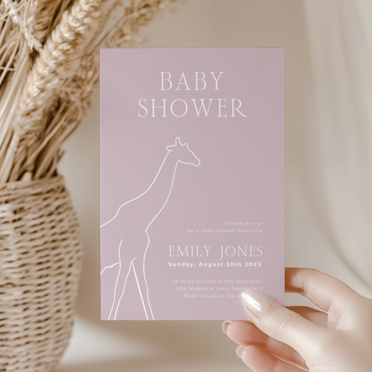 Baby Shower Invitation - Modern Pink Giraffe Outline BS171