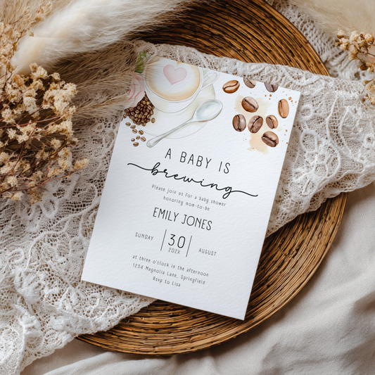 Baby Shower Invitation - Coffee Bean A Baby Is Brewing Latte Art BS183