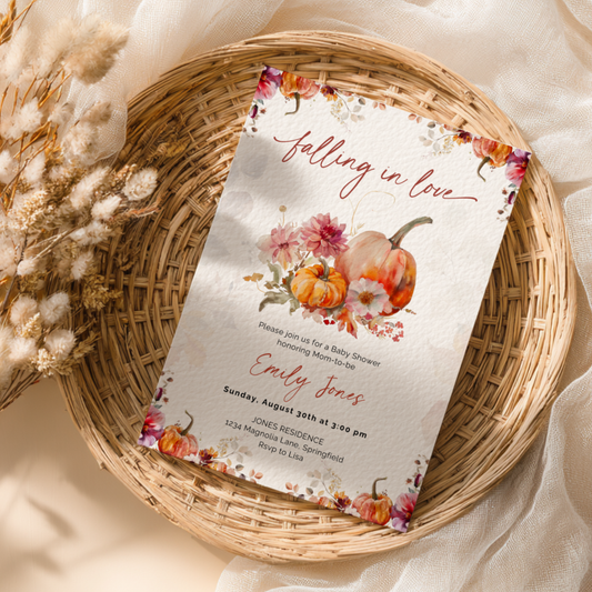 Baby Shower Invitation - Romantic Falling in Love Fall Florals BS178