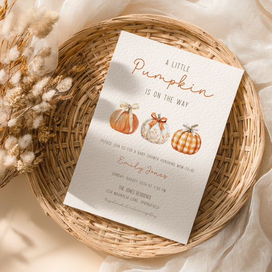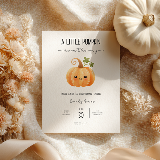 Baby Shower Invitation - Cute Little Pumpkin is On The Way BS191
