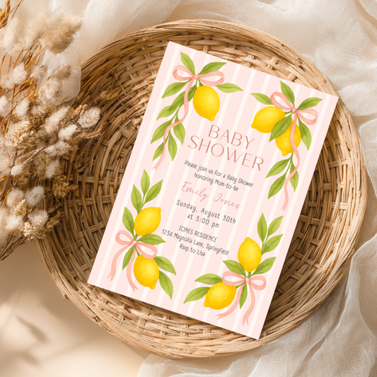 Baby Shower Invitation - Pink Lemon & Bows Ciao Baby Girl BS173
