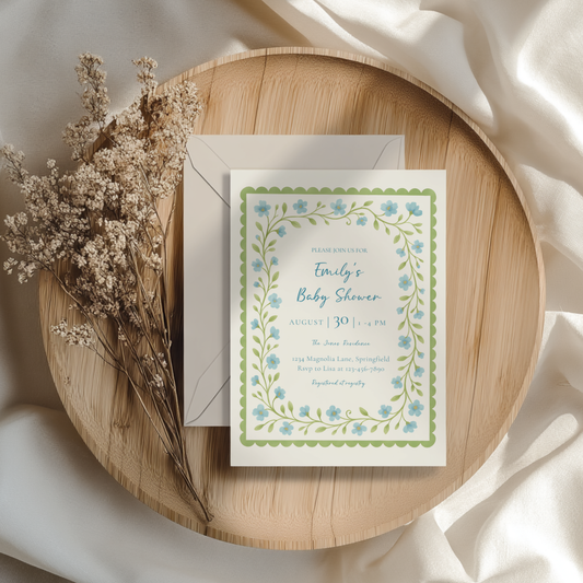 Baby Shower Invitation - Blue & Green Floral Garden Party BS169