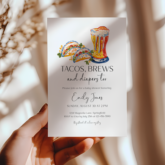 Baby Shower Invitation - Tacos, Brews & Diapers Too BS156
