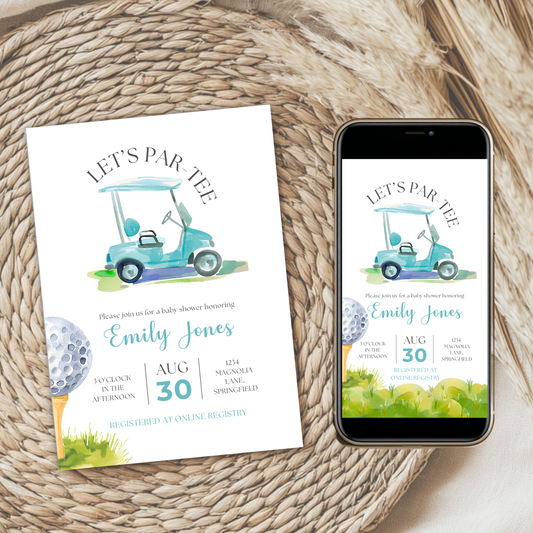 Baby Shower Invitation - A Little Putter Is On The Way Blue Golf Let's Par-Tee BS165