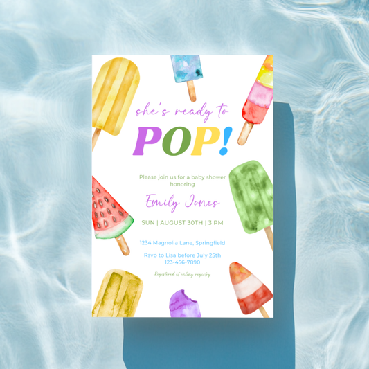 Baby Shower Invitation - She's Ready To Pop Colorful Ice Popsicles BS143