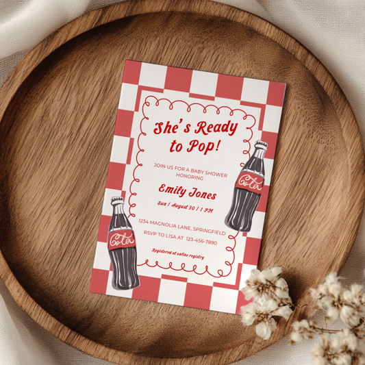 Baby Shower Invitation - She's Ready To Pop Red Retro Soda BS153