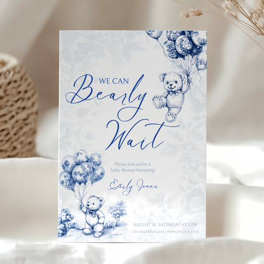 Baby Shower Invitation Bundle - Blue Bearly Wait Toile de Jouy BS35