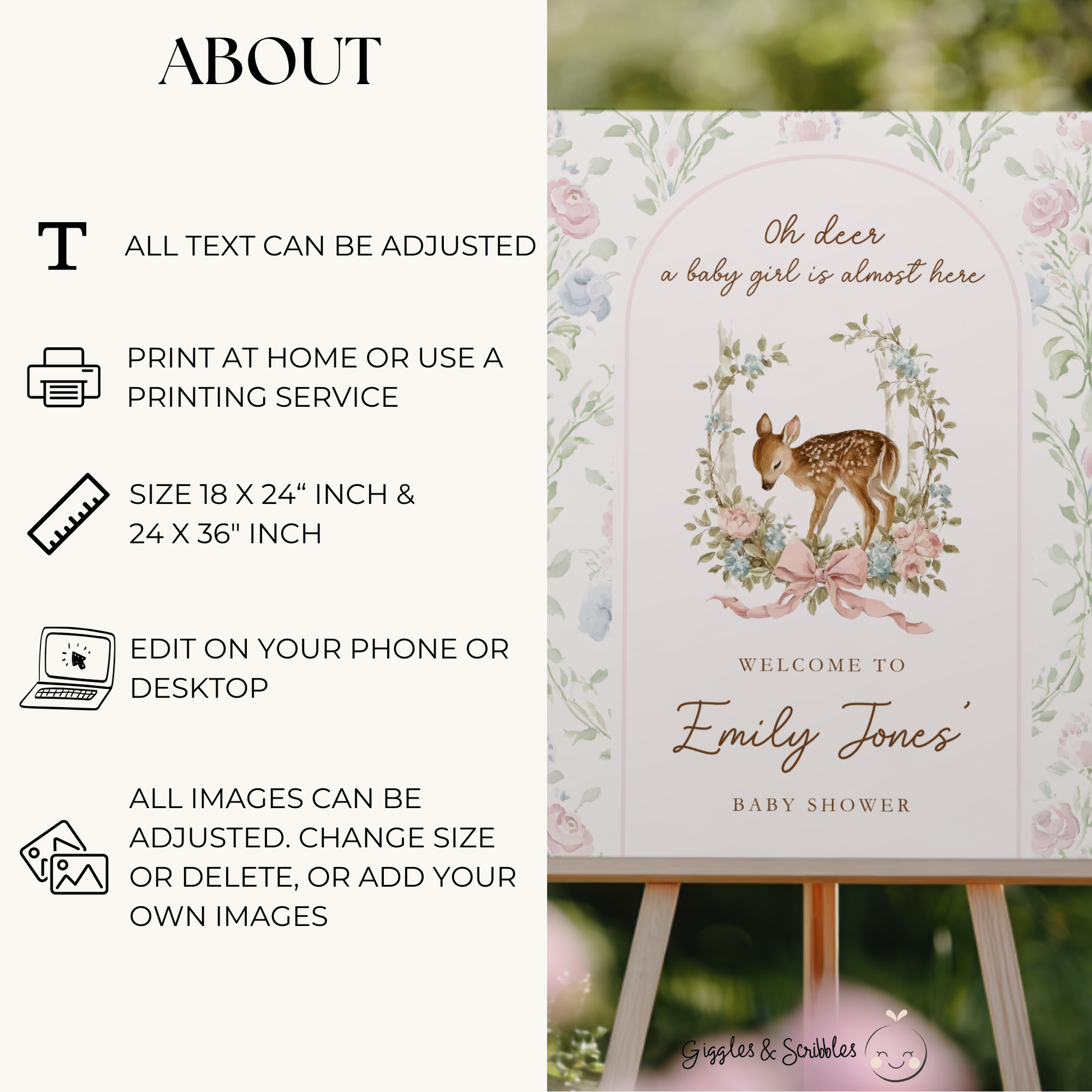 • Editable Baby Shower Welcome Sign (24 x 18" inch)