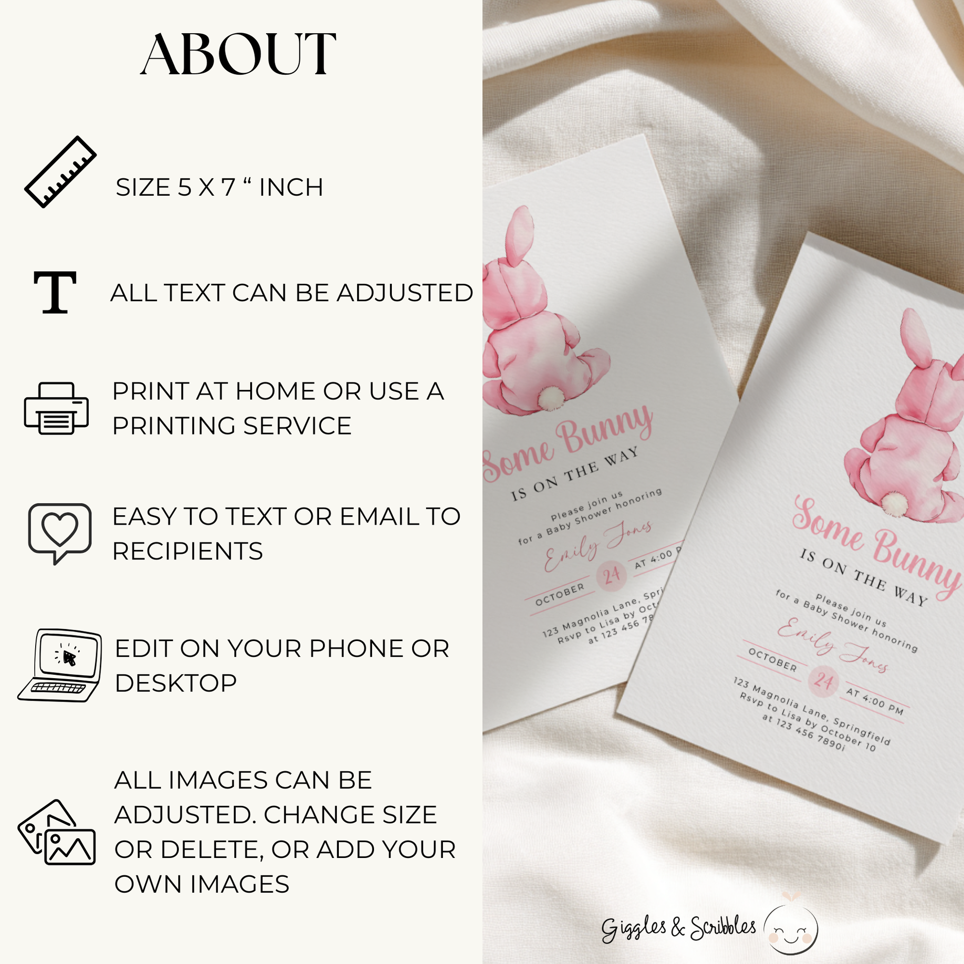 • Editable Baby Shower Invitation Template (5 x 7" inch)